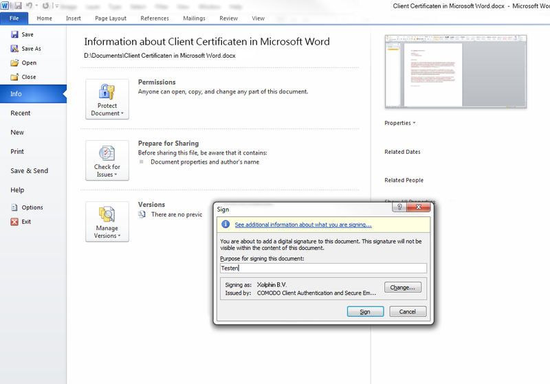 - Another pop-up appears where you can enter a reason for signing the document and which certificate you want to use. Click on Sign.