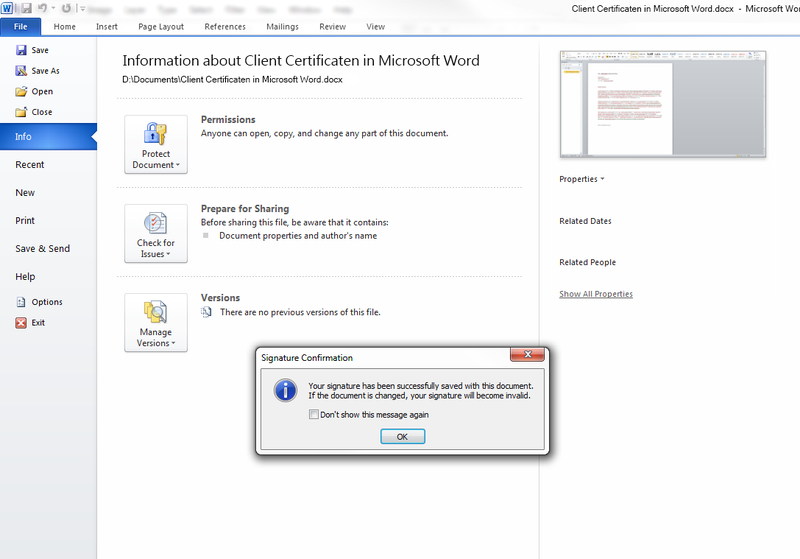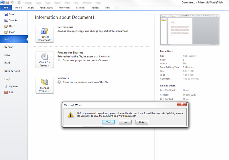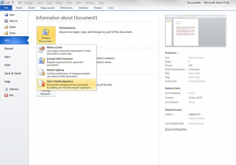 To keep the digitale signature valid after the expiration date, it's required to activate the timestampfunction. By default Office 2010 will use a so-called XAdES-EPES signature, for documents with digital timestamp information this will happen in the XAdES-T format. This setting will need some modifications of the Windows Registry, which are listed below.